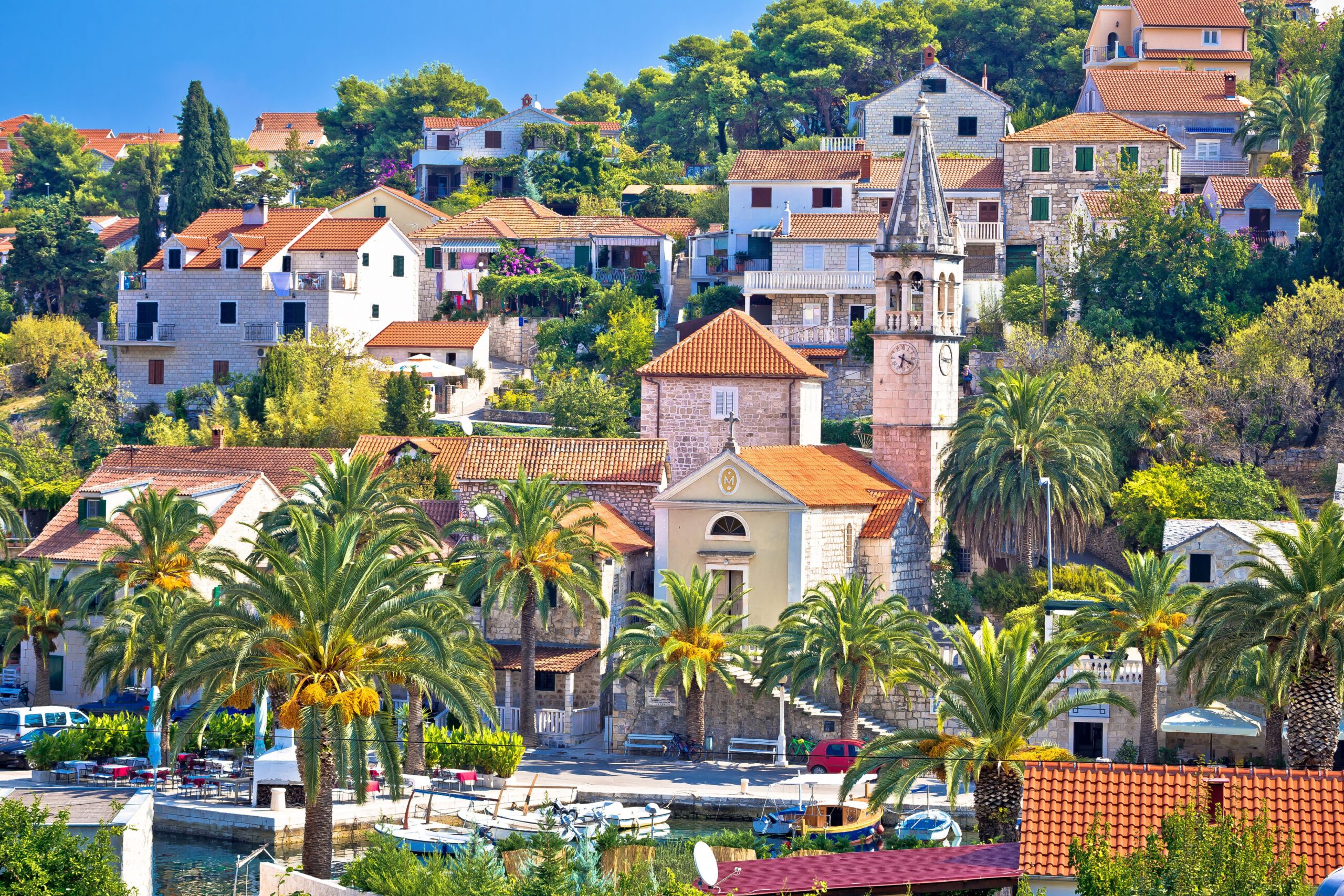 Its location at the foot of Vidova Gora, the highest peak (778 m) on this island, makes it the most elevated and third largest island in the Adriatic Sea.