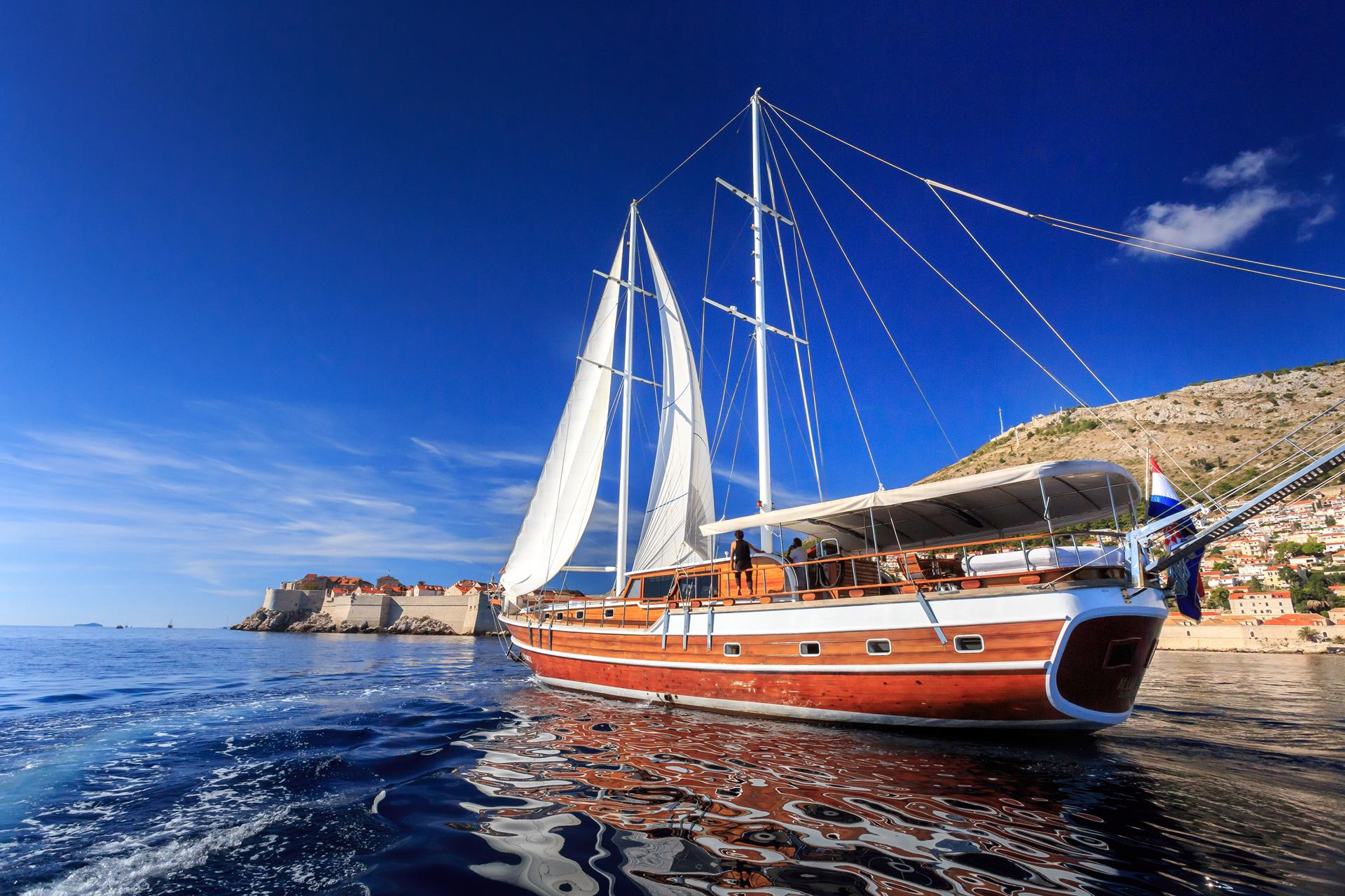 After you meet the crew and take a tour around the boat, you will sail towards the island of Brač. You will spend the night in some beautiful quiet bay on the island’s western side, near the picturesque town of Milna. Dinner will be served aboard, under the stars, and surrounded only by the sounds of sea and crickets. This is an ideal ambient for relaxation after a day or two of travel. If you still want to visit the town, the crew can take you there with a tender boat. Milna is a typical fishing harbor – with stone houses, narrow streets, and a church that dominates the village. Visit this beautiful Baroque church dedicated to Our Lady of the Annunciation. You will enjoy works of Venetian artists while the sounds of a 19th-century organ echo in the background. Bell tower offers a beautiful view. The town of Milna was also known as “Valle di Mille Navi” or “The bay of thousand boats.” This safest harbor on island Brač, surrounded by beautiful bays that offer protection from rough winds, was a shelter for sailors and their boats for centuries. Milna also has a rich shipbuilding tradition, and a unique Croatian sailboat, “bracera,” was designed here.